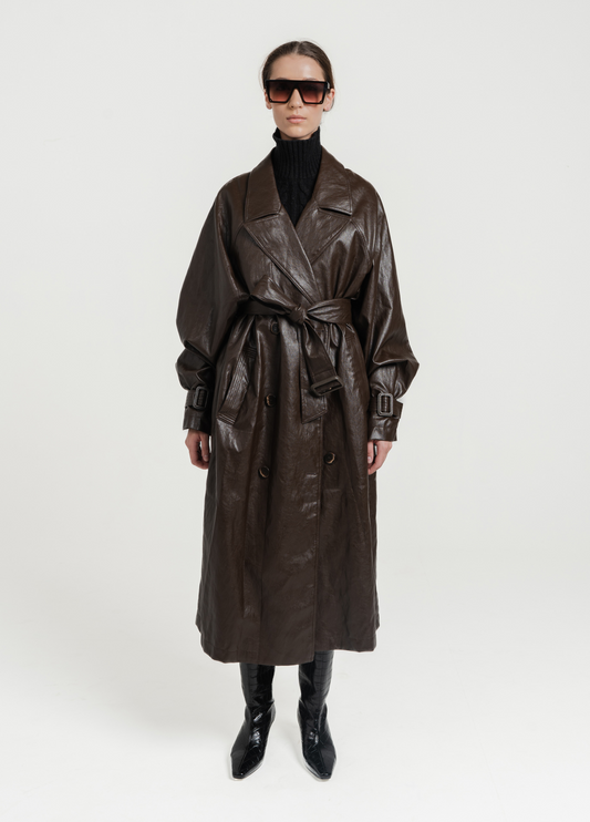 JULIETTA BELTED FAUX LEATHER TRENCH COAT