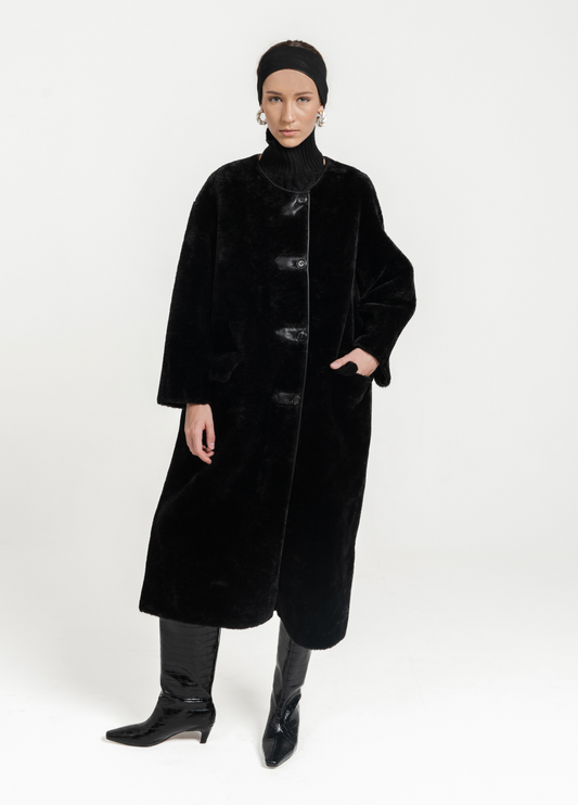 KAIA SIGNATURE OVERSIZED COAT - BLACK