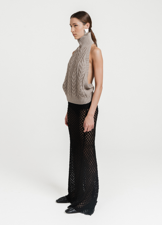 RUMI BACKLESS KNIT HALTERNECK - BEIGE