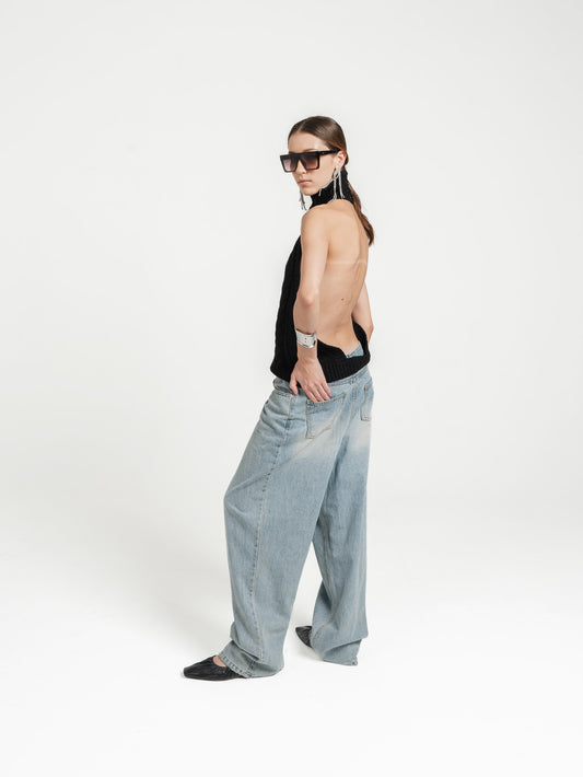 RUMI BACKLESS KNIT HALTERNECK - BLACK